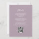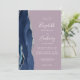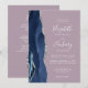 The left-hand edge of this elegant modern wedding invitation features a navy blue watercolor agate border trimmed with faux silver glitter. The customisable text combines handwriting, copperplate and italic fonts in white on a mauve purple background. The reverse side provides space for wedding details on a solid mauve background, along with a QR code guests can scan to visit your website and RSVP, which saves the cost of printing and mailing separate RSVP cards.