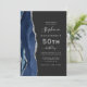 The left-hand edge of this elegant modern 50th birthday party invitation features a navy blue watercolor agate border trimmed with silver faux glitter. The customisable text combines silver grey handwriting, copperplate and italic fonts on a slate black background. Add RSVP instructions on the back of the card, along with a QR code guests can scan to respond online.