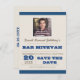 Navy Blue & Silver Bar Mitzvah Save the Date Announcement Postcard