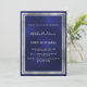 A trendy, modern 50th (or any age) birthday party invitation card for men, guys, male. A navy blue background. The blue colour is uneven. With a faux silver frame. Personalise and add your name and party details.