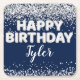 Navy Blue Silver Birthday Party Square Paper Coaster