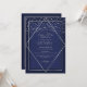 This elegant and modern graduation party invitation is ideal for a classy and formal event. It features a faux printed sparkly silver glitter confetti sprinkled over a thin geometric diamond and rectangle border with a navy blue thick border underneath and light navy blue fill. It's chic, luxurious, pretty, simple, and trendy; the perfect design for your special day.
