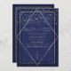 Navy Blue Silver Confetti Geo Border Wedding Invitation