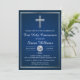 Navy Blue Silver First Holy Communion Invitation