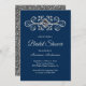 Navy Blue Silver Flourish Diamond Bridal Shower Invitation
