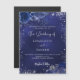 Navy blue silver flowers script luxury wedding magnetic invitation