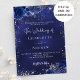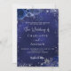 A navy blue background, decorated with faux silver glitter, sparkles and blue florals. The blue colour is uneven. Personalise and add your names and details.