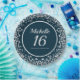 Elegant navy blue with silver diamond glitter teen girl's 16th birthday / Sweet 16 birthday party custom-designed paper plates personalised with her name, age, party date, and location.
