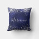 Navy blue silver glitter dust name script cushion