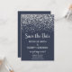 Navy Blue Silver Glitter Elegant Save the Date Invitation