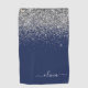 Navy Blue Silver Glitter Girly Monogram Name Golf Towel