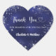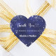 A classic navy blue background, the blue colour is uneven. Decorated with faux silver glitter, sparkles and a heart. Personalise and add your names. With the text: Thank you for sharing our special day.