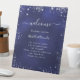 Navy blue silver glitter wedding program timeline pedestal sign