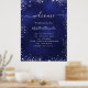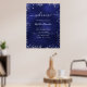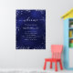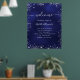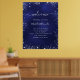 A navy blue background, decorated with faux silver glitter sparkles. The blue colour is uneven. Personalise and add your names and the wedding program.