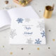 Navy blue, silver grey snowflake winter personalised wedding guest book. Simple wedding guest book design that features navy blue and silver coloured snowflakes.