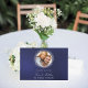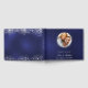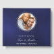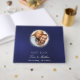 A stylish navy blue background with faux silver glitter sparkles around the photo. The blue colour is uneven. Add your names, wedding date a photo.