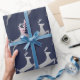 Navy Blue Silver Reindeers Christmas Pattern Wrapping Paper