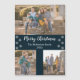 Merry Christmas cards with pictures featuring photo collage, with three (3) images, white script typography and silver snowflake border, against classic navy blue background. Easily personalise with your favourite photos, colours and text. Photo credit Photography © Storytree Studios, Stanford, CA.