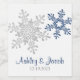 Silver grey, navy blue, and white snowflakes winter wedding wine bottle label. Navy blue and silver coloured bold snowflake design for a winter wedding.