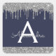 Navy Blue Silver Sparkle Glitter Monogram Square Sticker