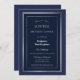 An elegant navy blue surprise 21st birthday dinner party invitation featuring a twin silver lined border.