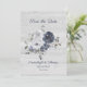 Navy blue and silver grey, watercolor floral bouquet with wood overlay on a white background.
