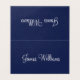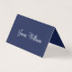 Navy blue and white simple folded place setting cards (horizontal tent) with white text printed on navy blue background. Dimensions of the cards are 2 inches x 3.5 inches (folded) and 4 inches by 3.5 inches (unfolded).