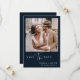Navy Blue modern script wedding photo save the date. For more advanced customisation of this design, please click the BLUE DESIGN TOOL BUTTON above!