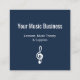 Music lessons business card, on a navy blue background and a white treble clef symbol. With customisable lettering, you can add your own information. You also add your website to allow for connection with a QR code. Great for promoting your musical business.