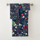 Navy Blue Simple Wildflower Pattern Bath Towel Set