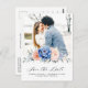 Navy blue blush pink floral wedding photo save the date postcard featuring elegant bouquet of navy blue, royal blue , white , blush garden rose, hydrangea, and sage green eucalyptus leaves. Please contact me for any help in customisation or if you need any other product with this design.