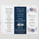 Navy blue blush pink floral wedding program featuring elegant bouquet of navy blue, royal blue , white , blush garden rose, hydrangea,  and sage green eucalyptus leaves. Please contact me for any help in customisation or if you need any other product with this design.