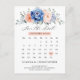 Navy blue blush pink floral wedding calendar save the date featuring elegant bouquet of navy blue, royal blue , white , blush garden rose, hydrangea, and sage green eucalyptus leaves. Please contact me for any help in customisation or if you need any other product with this design.