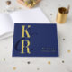 Navy Blue Slender Ampersand Gold Intials Wedding Guest Book