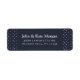 Navy blue, return address label. White snow fall frame with festive blue background and template lines for your name and address in coordinating white.