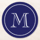 Navy Blue Solid Colour Custom Monogram Round Paper Coaster