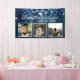 Large three photo collage graduation banner for all of the graduates' photos! Design features a modern white "Congratulations" calligraphy script design on a glittery navy blue background. Personalise the custom text with the class year and name.