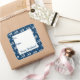 Starfish Christmas stickers for wrapping gifts. Navy blue colour with pattern of white sea stars this square sticker comes in two sizes. Customise text to say “Merry Christmas” or other greeting. A white square panel in the centre is blank for names.