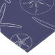 This table runner features a white illustrated line pattern of starfish and sand dollars. The background is navy blue, but can be changed to any colour of your choice. Perfect for beachy, coastal or nautical theme decor.