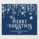 Navy blue and white string lights sparkles Christmas party wine bottle labels with a cute whimsical fun party for a festive Holiday.