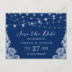 Navy Blue String Lights Elegant Lace Save the Date Announcement Postcard