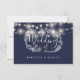 Navy Blue String Lights Floral Wedding RSVP Card