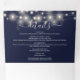 All in one navy blue tri-fold wedding invitation featuring pretty string lights and elegant typography. The invitation includes your celebration guest information details and a detachable RSVP card. Designed by Thisisnotme©