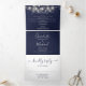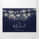 Navy Blue String Lights Script Monogram Wedding Tri-Fold Invitation