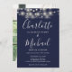 Navy Blue String Lights Script Photo Wedding Invitation