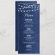 Chic modern summer wedding menu card design with simple elegant glowing string lights hanging across the top and a classy mix of modern and calligraphy script fonts on a printed faux watercolor texture background. A simple and stylish preppy design, perfect for summer! Click the CUSTOMIZE IT button to customise fonts, move text around and create your own unique one-of-a-kind invitation design.