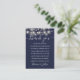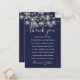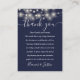 An elegant navy blue wedding celebration thank you reception card featuring pretty string lights. Personalised with your special thank you message set in stylish white typography. A special keepsake thank you for your guests. Designed by Thisisnotme©
