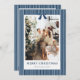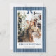 Navy Blue Stripe Bow Christmas Photo Holiday Card