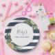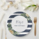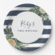 Navy Blue Stripe Lemon Citrus First Birthday Party Paper Plate