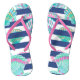 These pretty flip flops feature a beautiful teal green, gold, pink and white seashell pattern laid over and under a navy blue stripe background. Bright and colourful for the beach, but fancy enough to wear anywhere!
